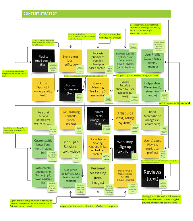 In the early discovery phase, I studied existing streaming platforms like Spotify and Apple Music, as well as community hubs like Reddit and Last.fm. I interviewed metal fans to understand their behaviors and frustrations, focusing especially on the need for shared experience and sub-genre representation.