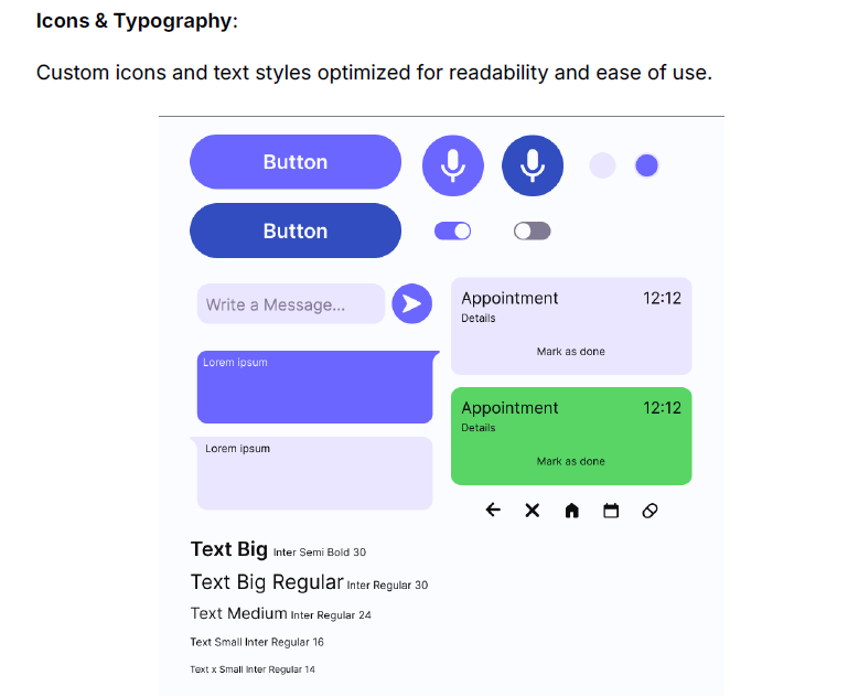 • Designing voice-first interaction flows that feel intuitive, especially for users with cognitive impairments.